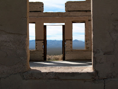 As we drove into the ghost town, we noticed we were being followed by a line of... you guessed it: seven black Porsches. Um, that was pretty bizarre. They all went into Rhyolite and parked together at the far end of the town. As we were wandering around a little while later, they all passed us again in a little convoy, on their way out of town. It was kind of weird.