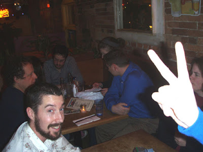 Mark is already looking a bit happy and goofy. He got so happy and goofy by the end of the night that he couldn't function at all the next day. Trivia: the guy sitting behind him is also name Mark Reed. Slightly different spelling than our own Mark Reid.