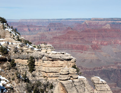 We were awed by the amazing vistas, but it was tiring to be constantly herded towards cheesy gift shops and overpriced food. In some areas the crowds of witless tourists were almost overwhelming, but fortunately all it took was a short hike up the easy trails to get away from the thick crowds. Like the Hoover Dam, we were astounded that a weekday in February would draw so many people, and we were thankful that we were not visiting in the midst of the summer.