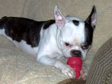 The thing about Boston Terriers is that they are a big dog. They have no clue that they are in a small body. Unless you carry them around!!! Mark's other concern may be that he said he didn't want a dog where you could see their anus all the time. Well he should be used to that by now. He already has 2 of those...so what is the big deal?! Besides, Boston butts look like little piggy bums....oh so cute. (I know, I'm nuts!)