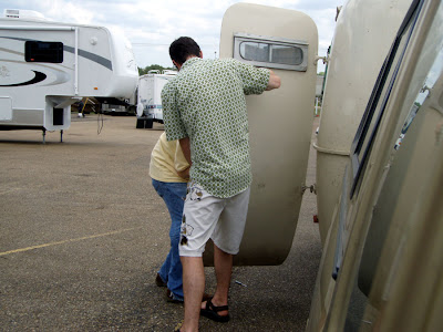 After five (count 'em, five) hours at the RV Superstore in the middle of Mississippi, we have a door handle that will stay closed. But it doesn't lock.