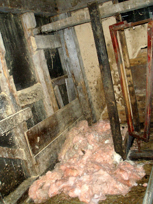 A random pile of insulation. What's that splattered on the wall? Wait, no, don't tell me.
