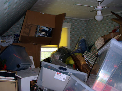 Gotta love these roomy old farmhouse closets. Couldn't even fit a body in this one, I'm pretty sure. Also, I see four different kinds of wallpaper. Niiiice.